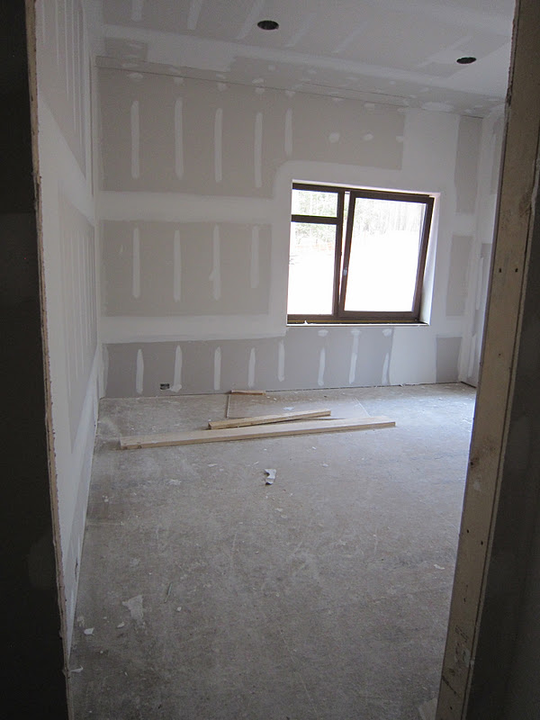 Stacked sheetrock at the master bedroom door awaiting installation. |